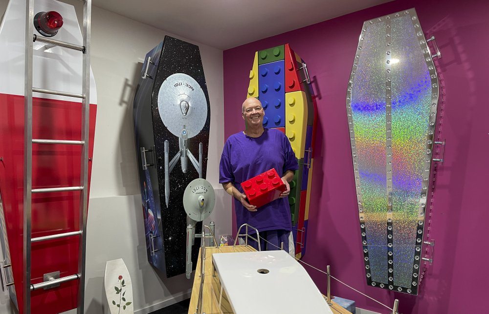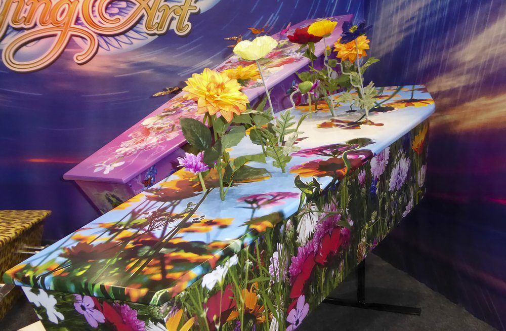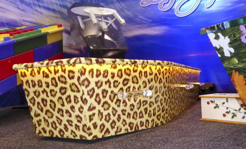 Au fost sicriele strălucitoare acoperite cu bijuterii false, o sicriă inspirată din filmul „Matrix” și o mulțime de sicrie care descriu plajele și locurile de vacanță preferate ale oamenilor.