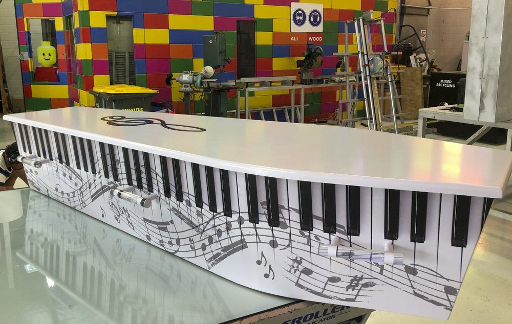 20 aprilie 2021Phil, Ross Hall, care conduce o afacere în Auckland, Noua Zeelandă, numită Dying Art, care construiește personalizat sicrie colorate.